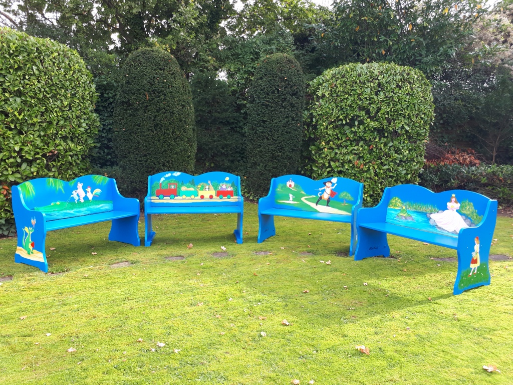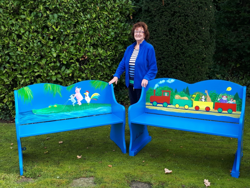 Der Malkreis des Sozialen Netzwerks mit Edith Neuhaus hat von der Gemeinde Leopoldshöhe gespendete Holzbänke künstlerisch neu gestalted.